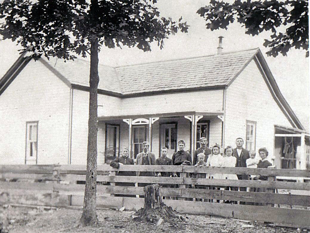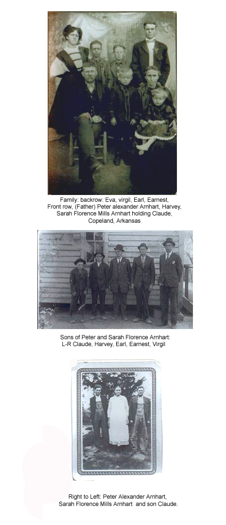 | 207abc, Three photos, (Circa 1908) Peter alexander Arnhart, wife Sarah Florence Mills Arnhart, with children: Eva, virgil, Earl, Earnest, Harvey and Claude Arnhart. Submitted by Margaret Arnhart from Ketchum , Idaho | |