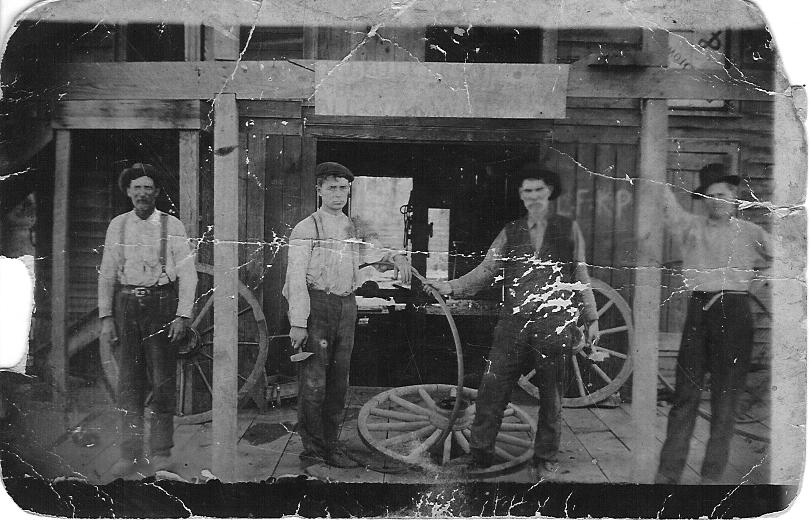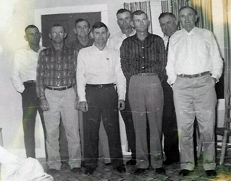 | 2nd from left is Lessel Fulkerson. This is in Van Buren County, Arkansas. It could have been taken in Shirley, Ar. I think some of the other men are Bradfords. - Submitted by Wanda Carey UPDATE: Feb 2, 2009 "The picture submitted by Wanda Carey is in front of the blacksmith shop in Shirley, Arkansas. The one with Lessel Fulkerson from 2nd from left. The first man on the left is identified as my Great Grandpa John Caldwell, father of Everett Caldwell, Father of Jack Caldwell, whom Jack Caldwell is my dad." I am Jackie Gatlin | |