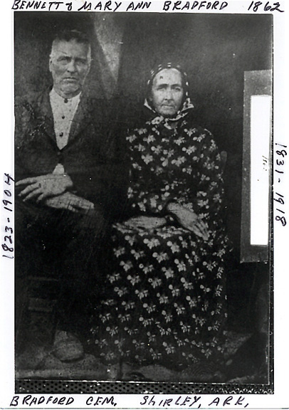 | Bennett & Mary Ann Estes Bradford (buried at Bradford Cemetery), Bennett is brother to my GGGranddad John A.Bradford. Bennett has a lot of descendants in VBC. Submitted by Joann Bradford | |