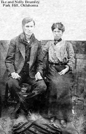 | Ike and Nelly Brunley Ike and Nelly Brunley in Park Hill, Oklahoma - Picture found in James Holland Egger, Jr's trunk in Old Liberty, back says Ike and Nellie Brunley and Ike Brunley and his wife.--Submitted by Beverly Berry | |