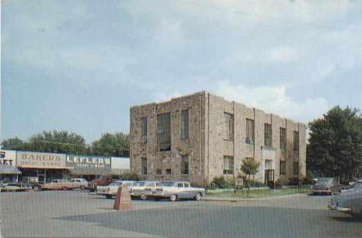 | Van Buren County Courthouses...then and now-- Photo of Current Van Buren County Courthouse and Town Square by Huel H. Morrison. Pub. by Harrison Photo Sales, Harrison, Arkansas. The original courthouse was torn down in the summer of 1934. Before this time it had been burgularized twice and set on fire twice, barely surviving each time. | |