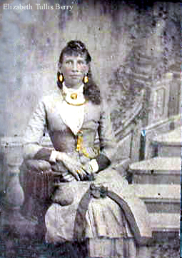 | Elizabeth Tullis Berry - 1860 Daughter of Sarah Tullis. She married Prettyman Berry. She is the mother of Mary Ann Berry of Low Gap, Arkansas.--Submitted by Beverly Berry | |