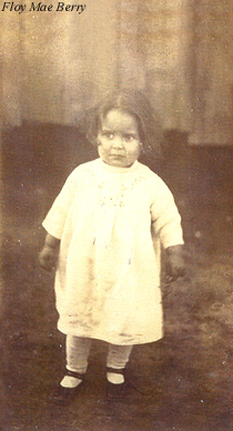 | Floy Mae Berry, first born child of Mary Frances and James Richard Berry. Floy's dress was made by her mother. --Submitted by Beverly Berry | |