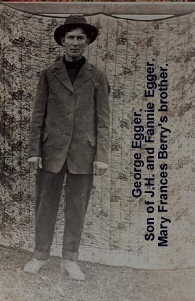 | George Egger Son of J.H. and Fannie Egger. Photo taken after the war. What a good looking man!--Submitted by Beverly Berry | |