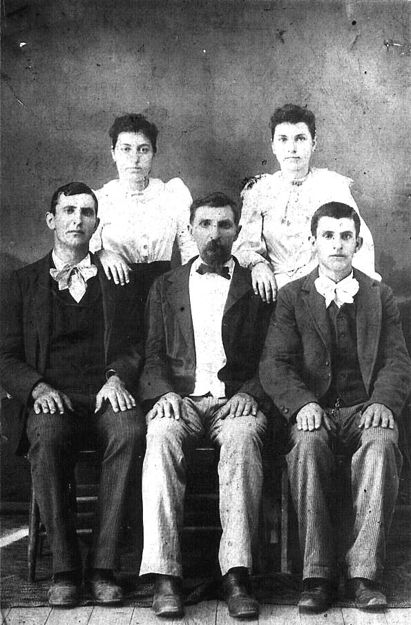 | To quote Joann: "This is my greatgranddad Richard Graham, who was my Grandma Bradford's dad, as well as her brothers and sister." Richard Graham and children, Back left: Mary Elizabeth and Margaret Leah Graham, Front left to right: Lindsey, Richard and John Webb Graham. (Mary married George "Buddy" Bradford, Maggie married David Crockett Bradford) Submitted by Joann Bradford | |