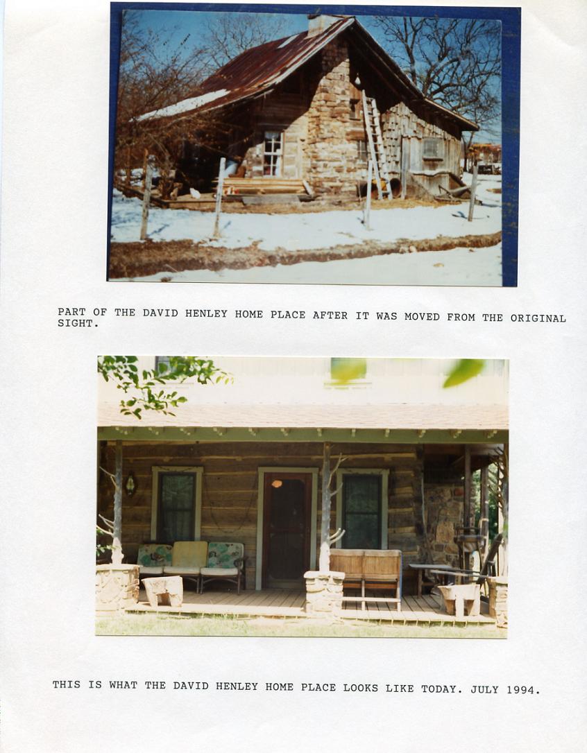 | Top is part of the David Henley homeplace after it was moved from the original site. Lower picture is what the David Henley home place looks like today. --Submitted by Cathy Duvall | |