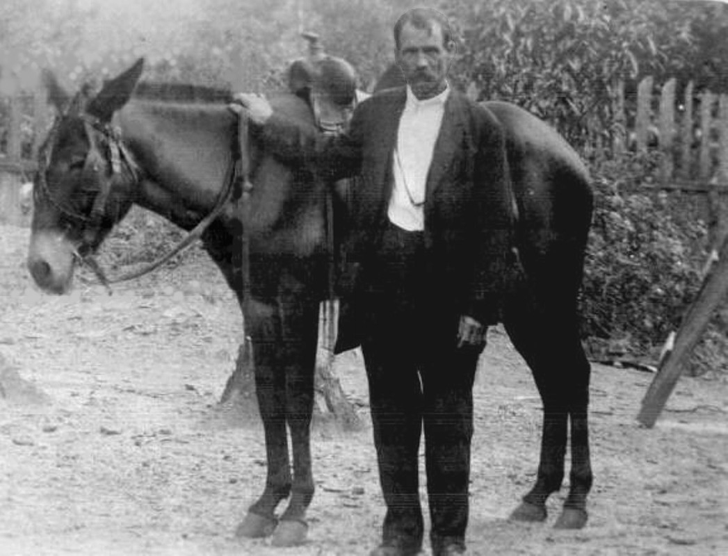 | Willis "Pink" Holley. Willis "Pink" Holley was Baptist Circuit preacher who preached and married people from Fairbanks to the Holly Mountain area. Shown with his mule Babe, his transportation. Click photo for more info Submitted by Virginia Potter | |