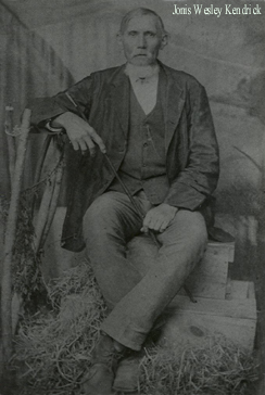 | Jonis Wesley Kendrick - 1871 Son of Joseph Warren and Lucinithe Kendrick. Husband of Mary Ellen Stanley. Father of Cornalie Jane Kendrick (December 24, 1854), Sarah "Sallie" Elizabeth Kendrick (March 31, 1858), George Wesley Kendrick (February 22, 1864), Mollie Kendrick (1867), Fannie Clara Kendrick (September 10, 1861), Mary Henryetter Kendrick (March 26, 1868), Julia Belle Kendrick (1869). Myrtle Kendrick (June14, 1871). --Submitted by Beverly Berry | |