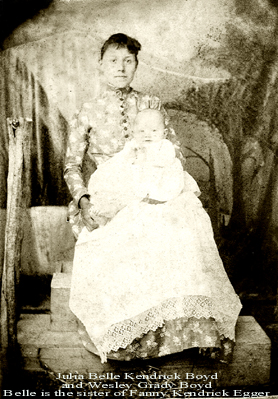 | Julia Belle Kendrick Boyd and her son, Wesley Grady Boyd - 1890 Julia Belle Kendrick Boyd is the sister of Fannie Clara Kendrick Egger. --Submitted by Beverly Berry | |