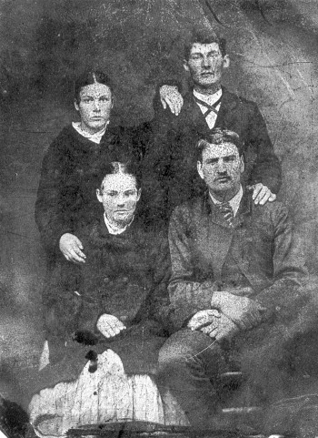 | Suggs Sisters Double Wedding; Lincoln Leonard Kidd and wife Louisa Elizabeth Suggs sitting, Standing are sister Lucy Ann Suggs and husband George Thornington Arnold. --Submitted by Michelle Johnson | |