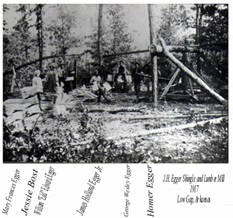 | William "Edd" Egger son of J.H. Egger, logging with horse power for the J.H. Egger Shingle & Lumber Mill- 1909 - Old Liberty, Arkansas.--Submitted by Beverly Berry | |