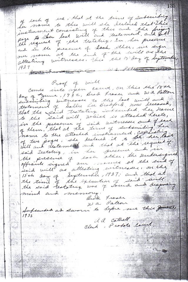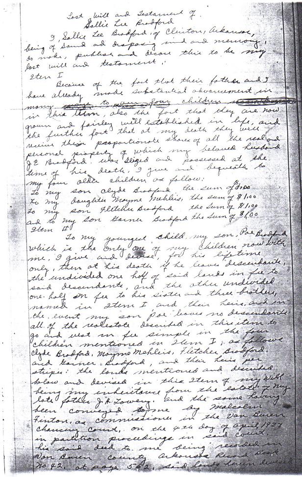 Last Will and Testament of Sallie Lee Bradford
