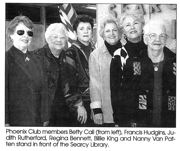 The only free lending library the city of Searcy has ever known was originally established by the Searcy Phoenix Club more than 105 years ago. With the help of the Searcy Phoenix Club, the library has continually met the need for changes and has remained a vital and active cultural and educational resource for Searcy as well as White County. The Phoenix Club also has remained just as active and vital throughout the years to contribute to the necessary growth of its major focus.