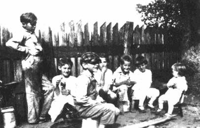 Looking like a scene from a "Little Rascals" movie, this gathering at Doniphan, Arkansas, took place in 1921, a couple of years before Lonnie Glosson (standing at left) earned enough money picking cotton to purchase his first harmonica. The "French harp" became his magic carpet out of the cotton patch to major radio stations like WLS in Chicago. (See "Lonnie Glosson, Harmonica Ambassador.") With Lonnie in this photo are (from left) his sister Violet, brother Buck, Jewel Wilson, Tommy Wilson, and Glosson sisters Pansy and Esther. Jewel and Tommy were cousins of Leotta Wilson Fuller, whose son became mayor of Kensett.