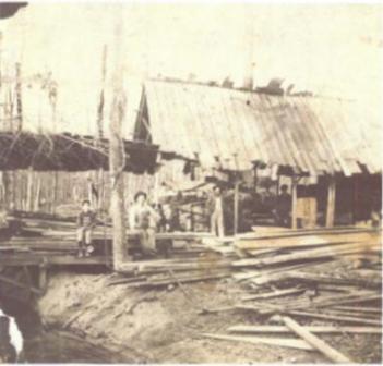 This is the Drake Sawmill at Drake Spur c1900. According to family legend, it was here that C.B. Drake's daughter Dora Dovey Drake met Tom McWilliams who was working for her dad at the mill. Dovey and Tom are the grandparents of Warren McWilliams of Shawnee, OK, who obtained the photo from his cousin Darline Pickett Brown, another McWilliams grandchild. It is labeled "c. 1900." Dora Dove Drake and Lewis Thomas McWilliams were married in 1900 in White County, AR. "Dovie" was the daughter of C.B. and Roxy Brewer Drake. Other children of C.B. and Roxy were Ethel(+Charles Davis), Lora (+Fount G. Morrow), John Henry (+Ruth ?), Vesta (+J.W. Ratcliff/Scott Griffin) and Bill (+Beulah Stoltz). Today, the sawmill is gone and the community is called Mountain Home.