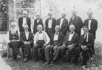 A dozen of Judsonia’s elders from varied backgrounds must have served their community together for 1921-22, because that’s the date penciled on the back of the photograph. We don’t know their purpose, but we do know who they are: (from left) back row – W.F. McKinsey age 72, I.W. Holland 69, a plasterer whose wife was Renee Parker, a relative of Lee Minnis, who donated the photograph to the White County Historical Society; J.H. Browning, age 73, a hardware store owner and former carpenter; J.H. Sloan, age 74; Dr. J.S. Eastland, age 77, a promoter of horse racing for the White County Agricultural and Industrial Fair of 1883; E.W. Smith, age 81; front row – J.W. Cathcart, age 78, a former member of the Light Guards and the Judsonia town band in the 1880s who founded the Judsonia Box Company; Christian Miller, age 80, a farmer; G.S. Yates, age 81, the great grandfather of Lee Minnis, who donated the photo; George C. Roth, age 79, who served in the Union Army and settled at Judsonia after the Civil War; A.A. Young, age 79; and Rufus Owens, age 79, a farmer. If you have additional information on this photograph or any of these men, share it with the White County Historical Society, P.O. Box 537, Searcy, AR 72145.