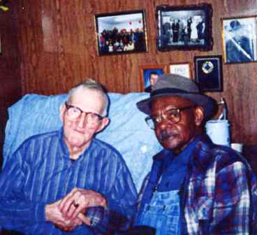 Abraham Lincoln Hawkins (left) was 101 years old when he was photographed during this visit from Telmon Boyd Nix in the Hawkins home at Mt. Vernon in the summer of 1999. The old friends talked about their childhood days.