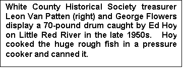 George Flowers display a 70-pound drum caught by Ed Hoy on Little Red River in