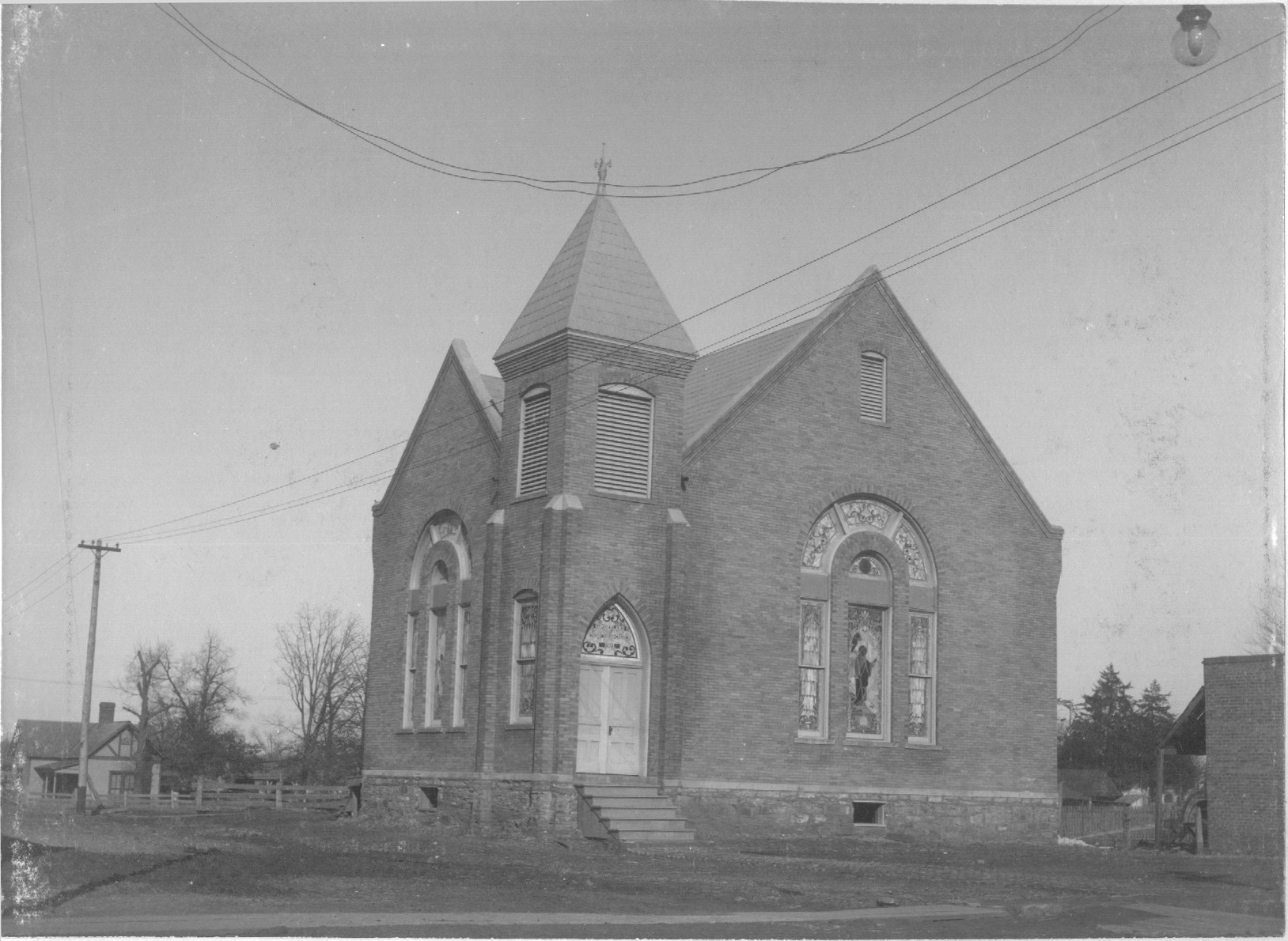 Cumberland Presbyterian, Searcy shortly after it was built in 1903. This building replaced the first Cumberland Presbyterian Church, a frame building. The church was organized on July 15,1850, by Alexander Stevenson and J.A. Wison, ministers from Tennessee. Photo courtesy Ivan Quattlebaum, White County Historical Society.
