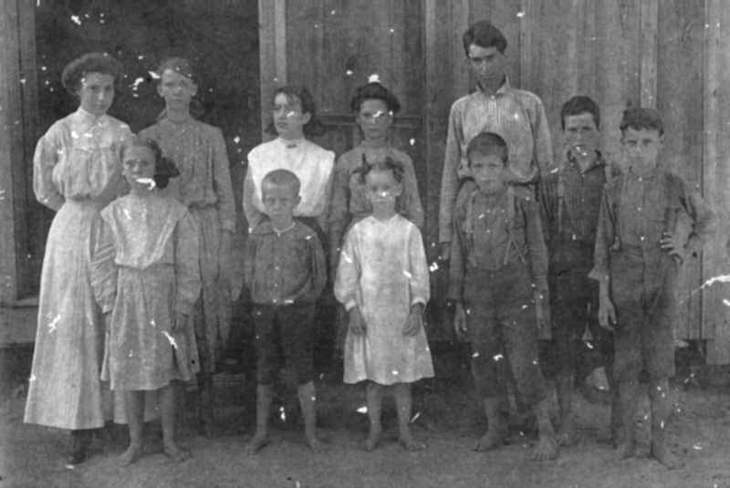 Here is the school photo I talked to you about. I do not know any of the people in the photo or where is was for sure....I think it is Altus school not long after it was built in 1912. That school was destroyed by fire in 1920. In 1925 the Altus and Denning school districts consolidated and another brick school was built on the same foundation.