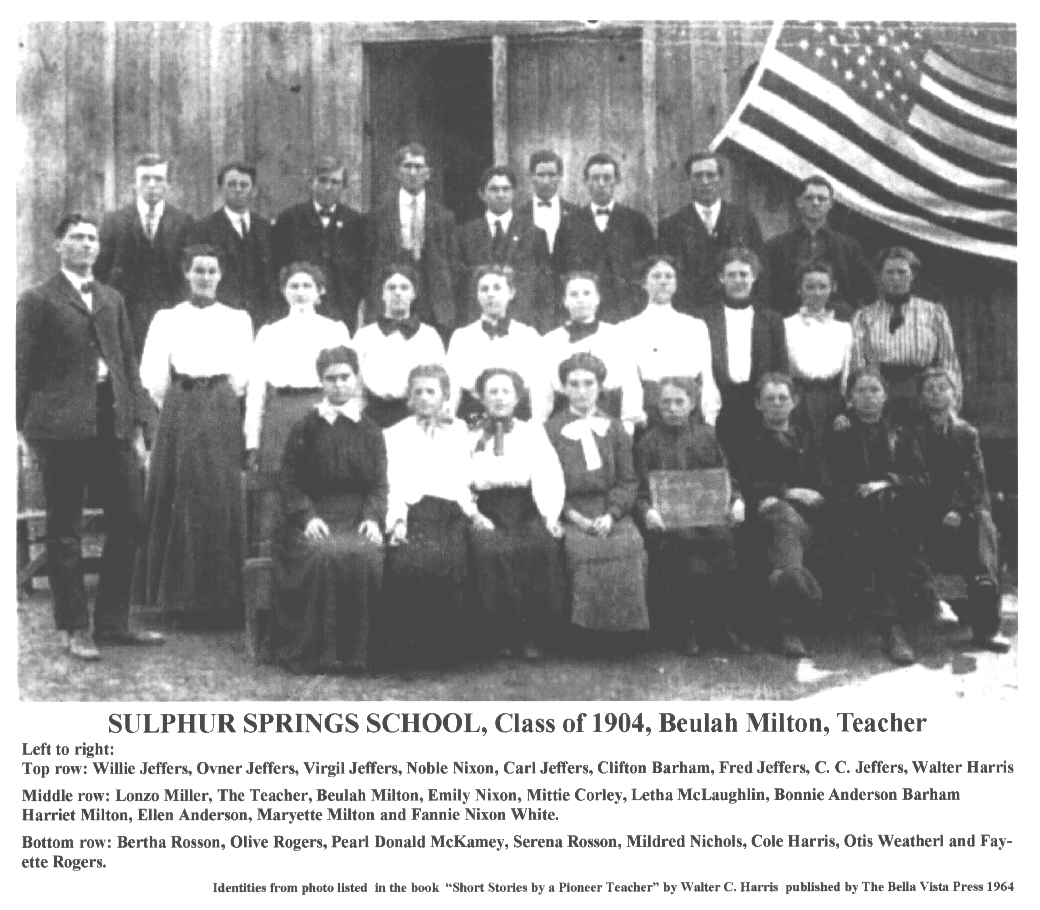 | Names for search engine: Willie Jeffers, Ovner Jeffers, Virgil Jeffers, Noble Nixon, Carl Jeffers, Clifton Barham, Fred Jeffers, C.C. Jeffers, Walter Harris, Lorenzo Miller, Teacher Beulah Milton, Emily Nixon, Mittie Corley, Letha, McLaughlin, Bonnie Anderson, Barham, Harriet Milton, Ellen Anderson, Maryette Milton, Fannie Nixon White, Bertha Rosson, Olive Rogers, Pearl Donald McKamey, Serena Rosson, Mildred Nichols, Cole Harris, Otis Weatherl, Fayette Rogers. |