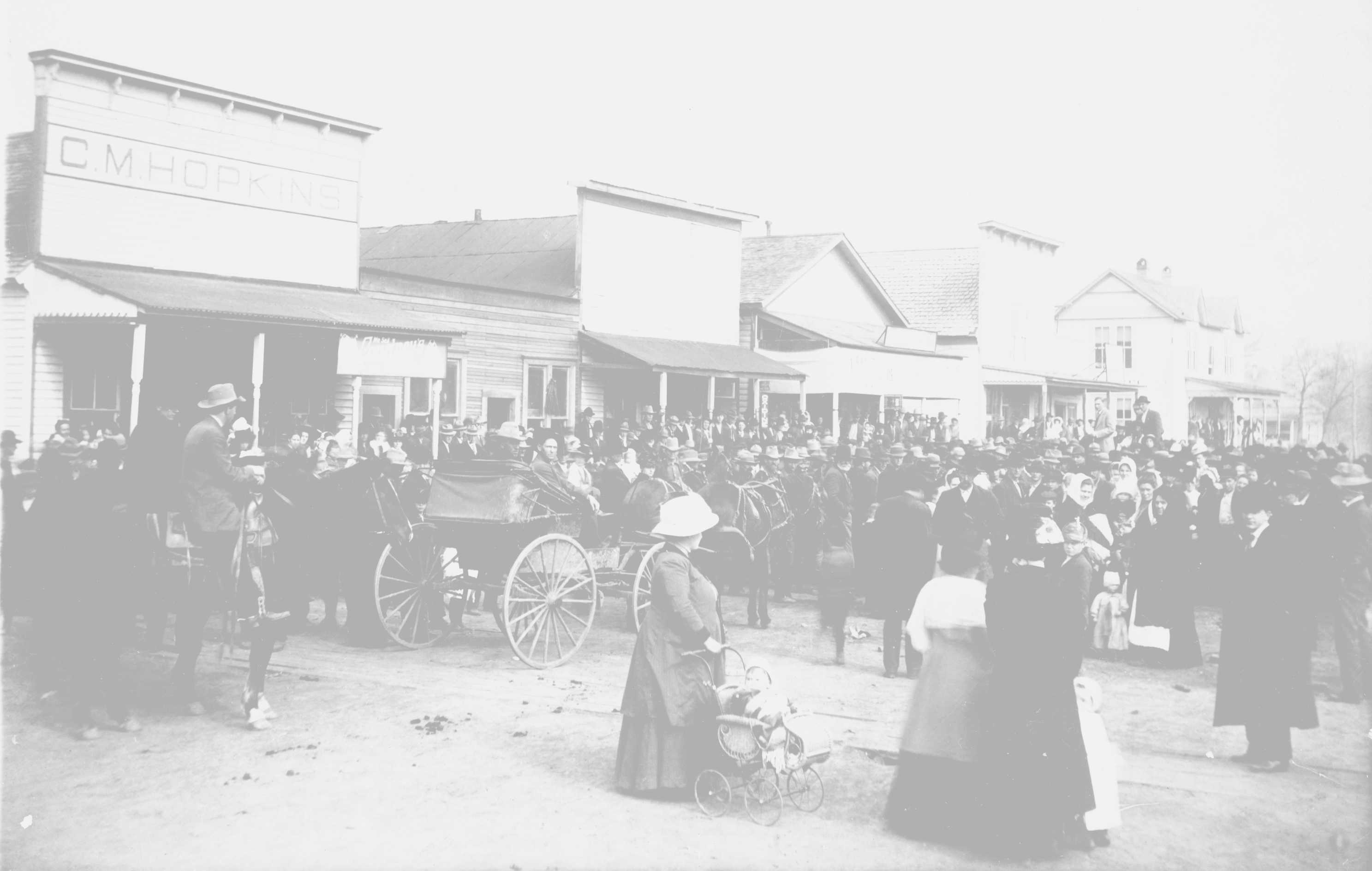 Written in 1970 for the Charleston Centennial: Photos highlighted blue have been added to this town. NOTES: Photos thanks to Joyce Friddle Feb 2006. Road through Branch with a southern view. Main Street Celebration. No power poles seen, or lights on the fronts of the stores so this photo must have been taken before electricity came to town. A branch railroad off the main line was built to Grand Prairie in 1919. Headquarters for that branch line was established near the present old high school building, abandoned since consolidation. Branch Railroad Station NOTE: The railroad came through in about 1898. The brick high school building was constructed in 1914. Need photo of this school if you have one to share. Some of the early settlers: J. Bradley Turner, Sr. was Postmaster at Branch for 30 years. Marvin Clevenger is the present Postmaster. The barber at Branch for over fifty years was Boyd Scherer. Samuel Thomson owned a cotton gin. Please submit copies of photos you may have in your attic. NOTES: Mayme Vest wrote a lot about this town. See some of her articles here.