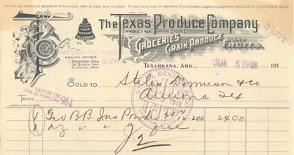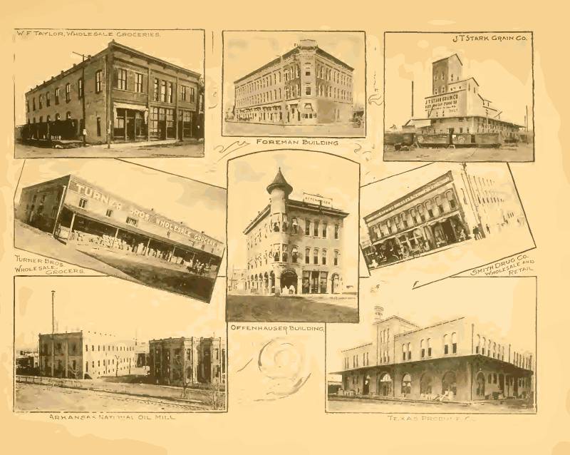 - Various Buildings - W F Taylor Wholesale Groceries, Foreman Building, J T Stark Grain Co., Turner Bros Wholesale Grocers, Offenhauser Building, Smith Drug Co Wholesale Retail, Arkansas National Oil Mill, Texarkana Produce Co. from Bob Ewing