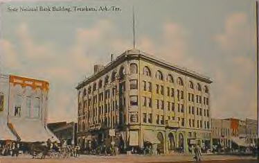 - Various Buildings - ?Moreland? Dry Goods, Gus J Ghio's Studio, Ben Williams Pharmacy, State National Bank, Unreadable, Unreadable Store, Texarkana National Bank from Bob Ewing