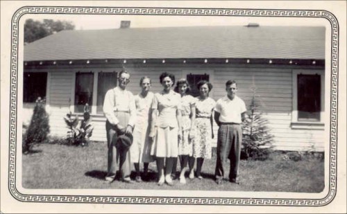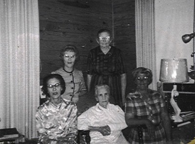- Pope, Mrs Anna birthday - Front l to r: Inez Jones McCoy, Anna Pope, Hazel Valentine Jones Bellieu; Back l to r: Mildred Essie Jones Tibbet, Mrs MacDonald from Elaine Martin
