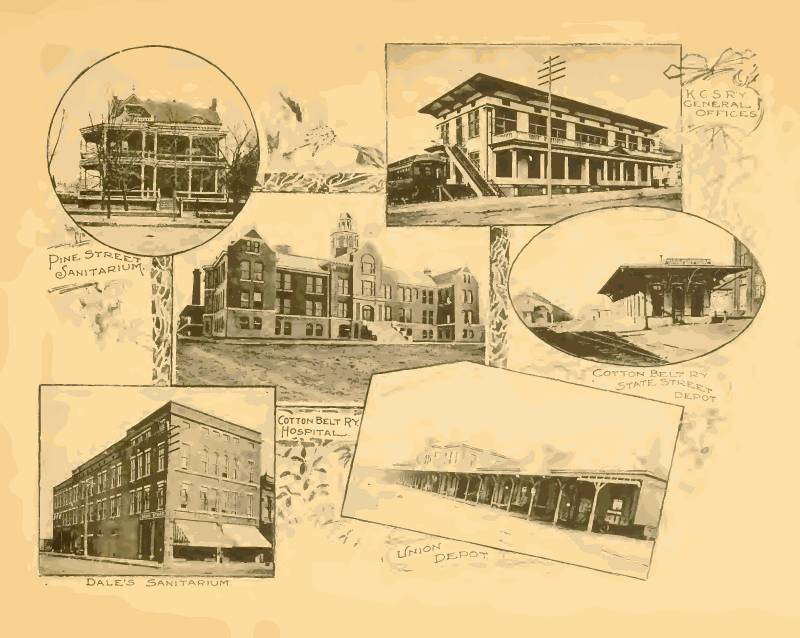 - Various Buildings - Pine Street Sanitarium, KCSR General Office, Cotton Belt RR Hospital, Cotton Belt RR State Street Depot, Dales Sanitarium, Union Depot from Bob Ewing