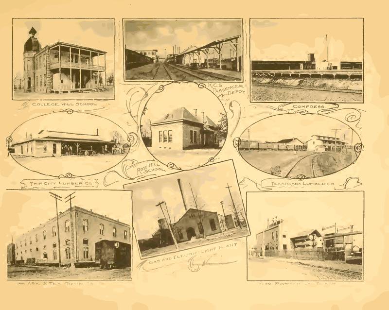 - Various Buildings - College Hill School, K C S Passenger Depot, Compress, Twin City Lumber Co., Rose Hill School, Texarkana Lumber Co., Ark & Texas Grain Co., Gas & Electric Light Plant, Unreadable from Bob Ewing