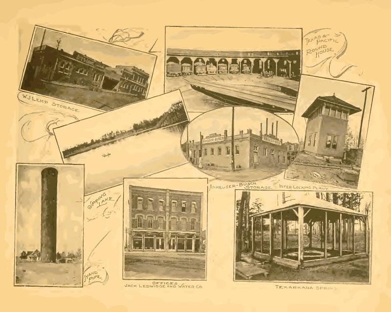 - Various Buildings - W J Lemp Storage, Texas & Pacific Round House, Spring Lake, Anheuser Busch Storage, Inter-Locking Plant, Stand Pipe, Offices Jack Ledwidge & Water Co., Texarkana Spring from Bob Ewing
