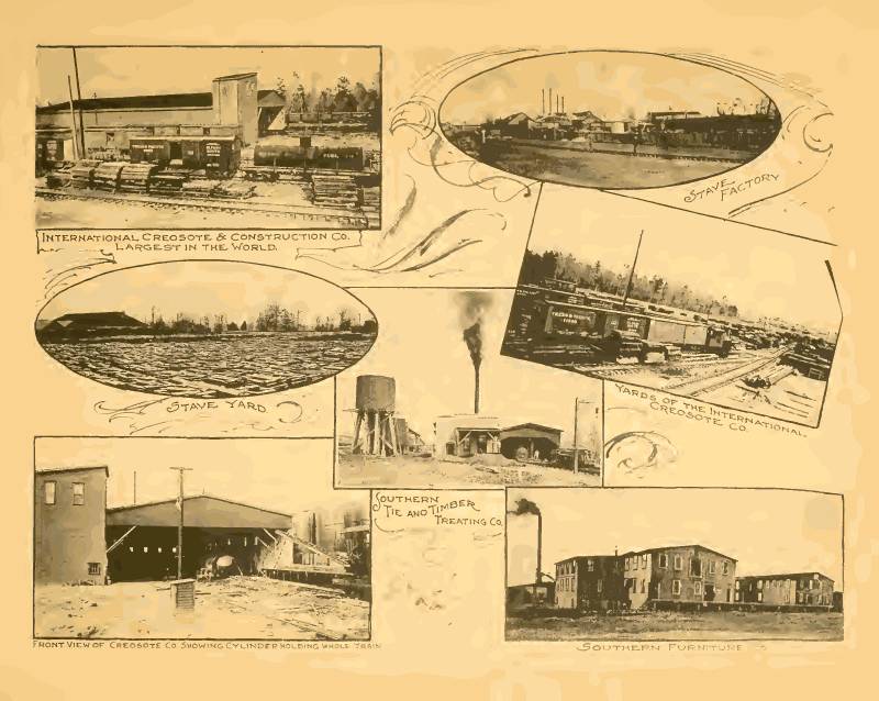 - Various Buildings - International Creosote & Construction Co. Largest In The World, Stave Factory, Stave Yard, Southern Tie & Timber Treating Co., Yards of the International Creosote Co., Front View of Creosote Co. Showing Cylinder Holding Whole ?, Southern Furniture from Bob Ewing