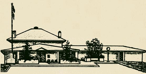 Sketch by Barbara Brown,1988, of the new front of the courthouse. Note the